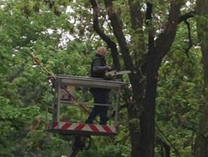 Nein, versicherte der Inhaber der ausführenden Baumschnittfirma, es werden keine Radikalschnitte vorgenommen. Nur totes Gehölz wird entfernt. Das sei ein sogenannter Pflegeschnitt, der auch innerhalb der Schonzeit durchgeführt werden darf. Denn erst, wenn das Grün sprießt, kann man auch erkennen, welche Äste abgestorben sind. Und: „Wenn wir irgendwo Nester auf solchen Ästen bemerken, wird dort nicht beschnitten.“