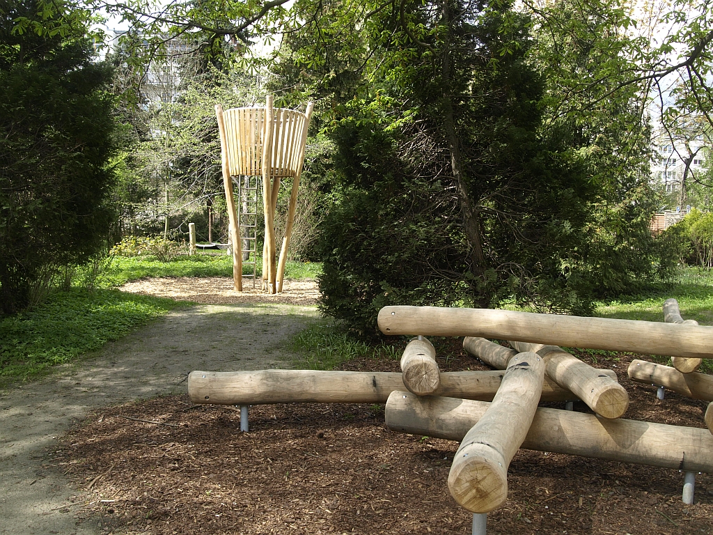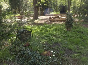 Noch sind Kletterturm und Balanciergebälk scheinbar unberührt, noch sind die Tore an der Heinrich-Roller-Straße verschlossen. Der Leise Park, der im zweiten Halbjahr 2011 auf einem Teil des alten St. Nikolai- und St. Marienfriedhofs entstand, erscheint ein wenig wie ein verwunschener Ort zu sein: Mit Wegen auf denen noch niemand flaniert, scheinbar zufällig ungestürzten Bäumen und efeuüberrankten Grabsteinen.