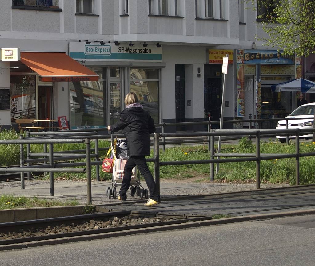 Der Übergang über die Straßenbahngleise in der Greifswalder Straße auf der Höhe Heinrich-Roller-Straße wird im Sommer durch einen Umbau entschärft werden.
