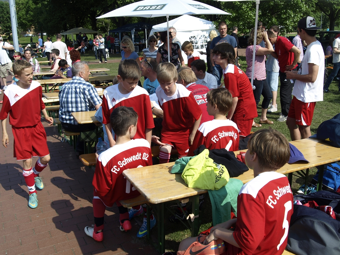 Händen von Marika Cseri lag, bei der Umsetzung war der gesamte Verein dabei – von Sonnabendfrüh bis Montagabend: Beim Auf- und Abbau der Stände und Zelte, am Grill und am Getränkewagen; bei der Betreuung der Mannschaften, bei der Auswertung der Spiele…