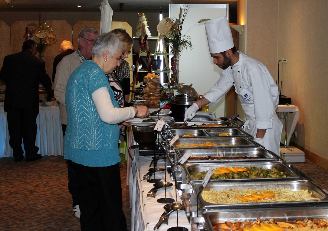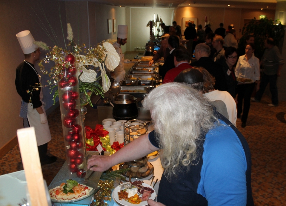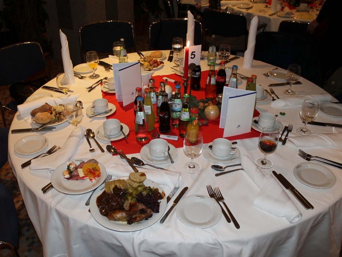 Seitdem stellt das Hotel nicht nur den Raum für die Feier zur Verfügung, sondern sorgt auch für das Weihnachtsmahl. Und das war nicht nur üppig, sondern in jeder Hinsicht erlesen.