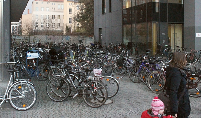 Ein paar Wochen später kam „Bernau“ in einer Sitzung noch einmal zur Sprache. Vielleicht, so der Stadtrat, sollte man mal eine Exkursion nach dorthin unternehmen, um zu sehen, wie das geht: Fahrräder übereinander. Natürlich hätte man auch nach Bremen fahren können, nach Köln oder in irgend eine andere deutsche Stadt. Aber Bernau liegt halt näher bei Pankow als Offenburg.