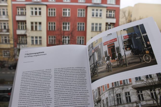 Zum einen ist es der Text von Matthias Klipp, der von 1990 bis 1996 Baustadtrat in Prenzlauer Berg war. Seine aus persönlicher Sicht reflektierten Veränderungsprozesse im einst „größten zusammenhängenden Sanierungsgebiet Europas“ erinnern wenig beschönigend an das Wie und Warum der Sanierung.