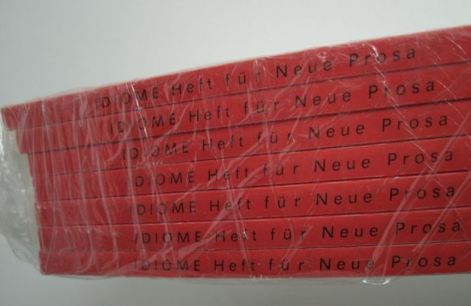 Die Nummer Neun der von Ralph Klever und Florian Neuner herausgegebenen Zeitschrift „IDIOME – Hefte für Neue Prosa“ sind gedruckt! Vorgestellt wird sie am Freutag, dem 29. April ab 20 Uhr von der Rumbalotte Prenzlauer Berg Connection e.V. in der alten Willner-Weißbierbrauerei in der Berliner Str. 80-82.