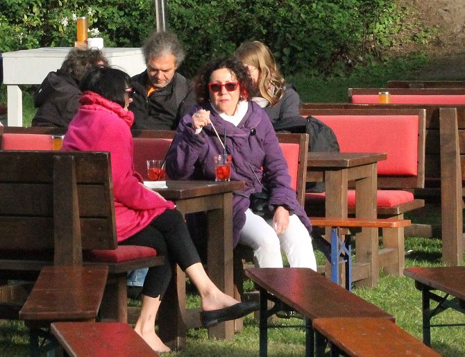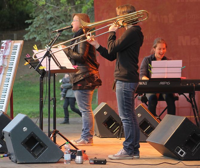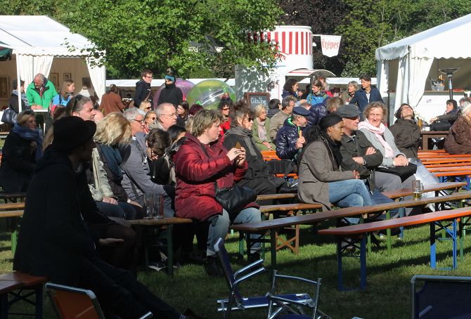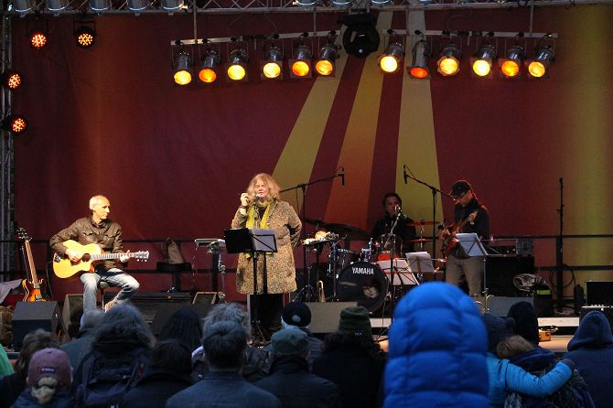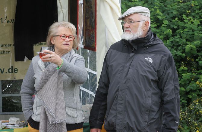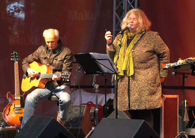 Am Pfingstmontag hatte sich dann wieder alles eingepegelt. Zwar war es noch immer kalt, aber die wieder zahlreich erschienen Besucher hatten mehrheitlich ihre Winterklamotten aus dem Keller geholt, um den Gesang von Uschi Brüning nicht mit Zähneklappern zu stören.