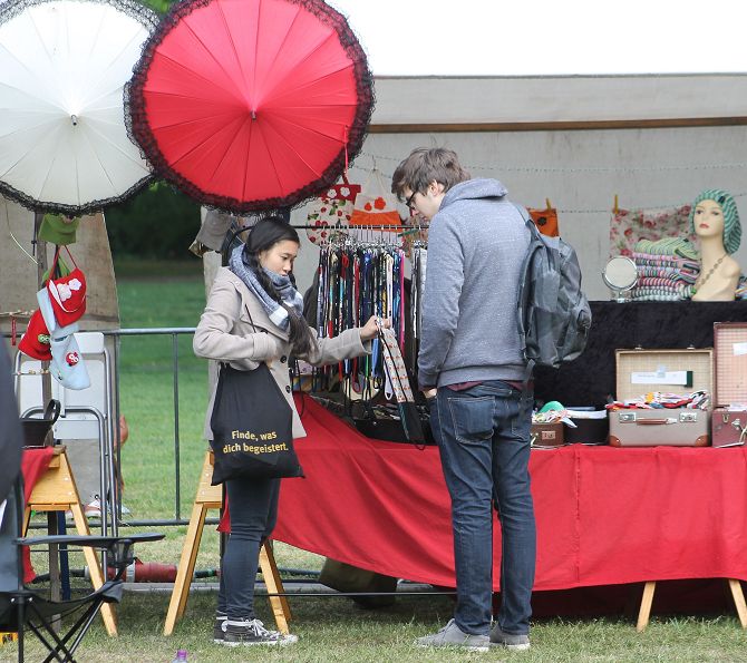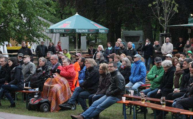 Eigentlich hätte es kein Thermometer gebraucht, um am Pfingstsonntag den Temperaturabfall im Pankower Bürgerpark zu messen. Denn je kälter und windiger es wurde, desto tiefer sanken auch die Mundwinkel von Veranstalter Rainer Gehrmann. Zum Abend hin wurde es einstellig – frischer als zur letzten Weihnacht. Da drohte auch die Besucherzahl einstellig zu werden. Die Getränkestände reagierten prompt und nahmen Glühwein in ihr Angebot auf. Der Umsatz soll beachtlich gewesen sein.