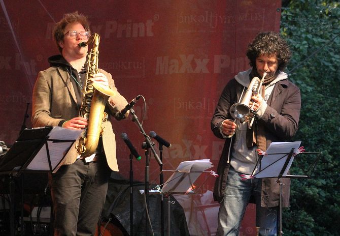 Dabei begann es am Sonnabend mit einem vollen Haus, woran neben dem Wetter natürlich auch Andrej Hermlin und sein Swing Dance Orchestra eine Aktie hatten. Der Weltstar ist bereits Stammgast beim Parkjazz. nebenher wurde auch noch ganz offiziell vom Bezirk – vertreten durch die Stadträte Torsten Kühne und Jens-Holger Kirchner die Option für die nächasten fünf Jahre Jazz im Park unterschrieben.