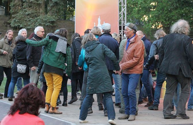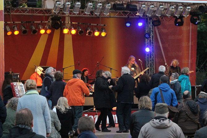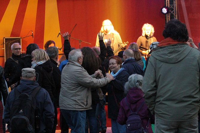 Als zum Abschluss dann „Engerling“ auf die Bühne kam, erwärmten sich die mehrheitlich doch schon im reiferen Alter befindlichen Fans der Band durch eine sportliche Betätigung, das sogenannte „Tanzen“.
