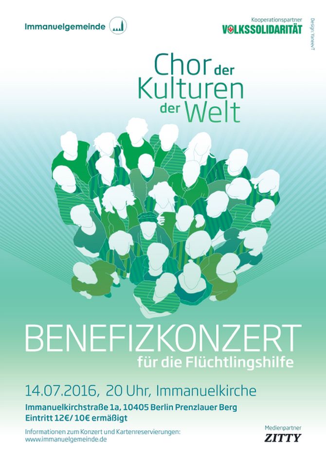 Der Chor der Kulturen der Welt führt in Zusammenarbeit mit der Evangelischen Immanuelkirchengemeinde Prenzlauer Berg und der Volkssolidarität ein Benefizkonzert für die Flüchtlingshilfe durch.