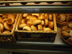 Woanders habe ich sie bisher noch nicht gesehen: Etwas dunkler, als normale Schrippen oder „Semmeln“; etwas kräftiger im Geschmack. Und wann immer ich an der Bäckerei in der Kugler-/Ecke Meyerheimstraße vorbeikomme… – ach was, ich komme eben nicht an ihr vorbei! Ich mache Halt, trete in den Eckladen ein: „Fünf Roggenschrippen, bitte!“