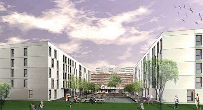 Die Häuser werden aus einer Stahlbetonkonstruktion mit Fertigteilen bestehen und über eine Außenanlage mit Spielplatz verfügen. Auch der Lindenberger Weg ist für die Unterbringung von etwa 450 Menschen vorgesehen, die derzeit noch in Not- oder Gemeinschaftsunterkünften leben. An diesem Standort sollen die Bauarbeiten voraussichtlich bis Ende Mai 2017 abgeschlossen sein.