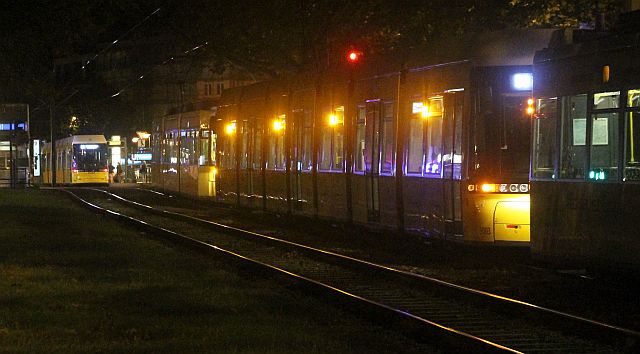 Gegen 1.00 Uhr wird nun auch die Berliner Straße zur Sicherheitszone erklärt: Der U- und Straßenbahnverkehr wird eingestellt und die „Nachtschwärmer“ werden gebeten, ihre bis dahin eingenommenen Plätze zu räumen. Die Sperrung beginnt nun in Höhe der Trelleborger Straße.