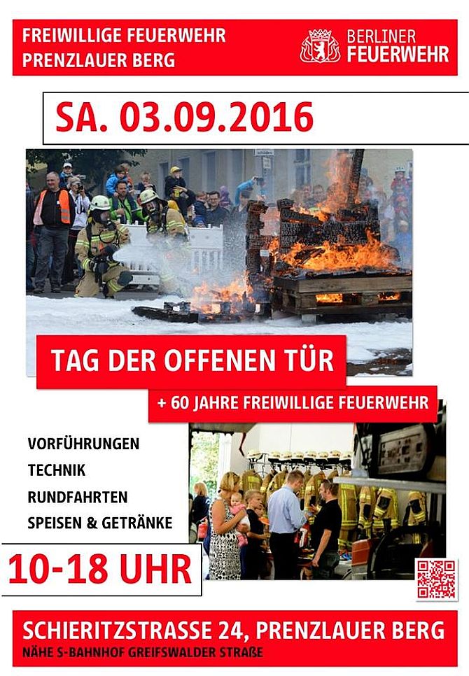 Am 3. September findet in der Feuerwache Schieritzstraße von 10 bis 18 Uhr wieder ein „Tag der offenen Tür“ statt. Und der ist diesmal etwas ganz besonderes, nämlich eine Geburtstagsparty: 1956 wurde die freiwillige Wehr in Prenzlauer Berg gegründet, sie besteht also nun schon seit sechzig Jahren.