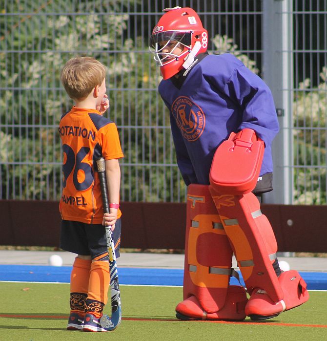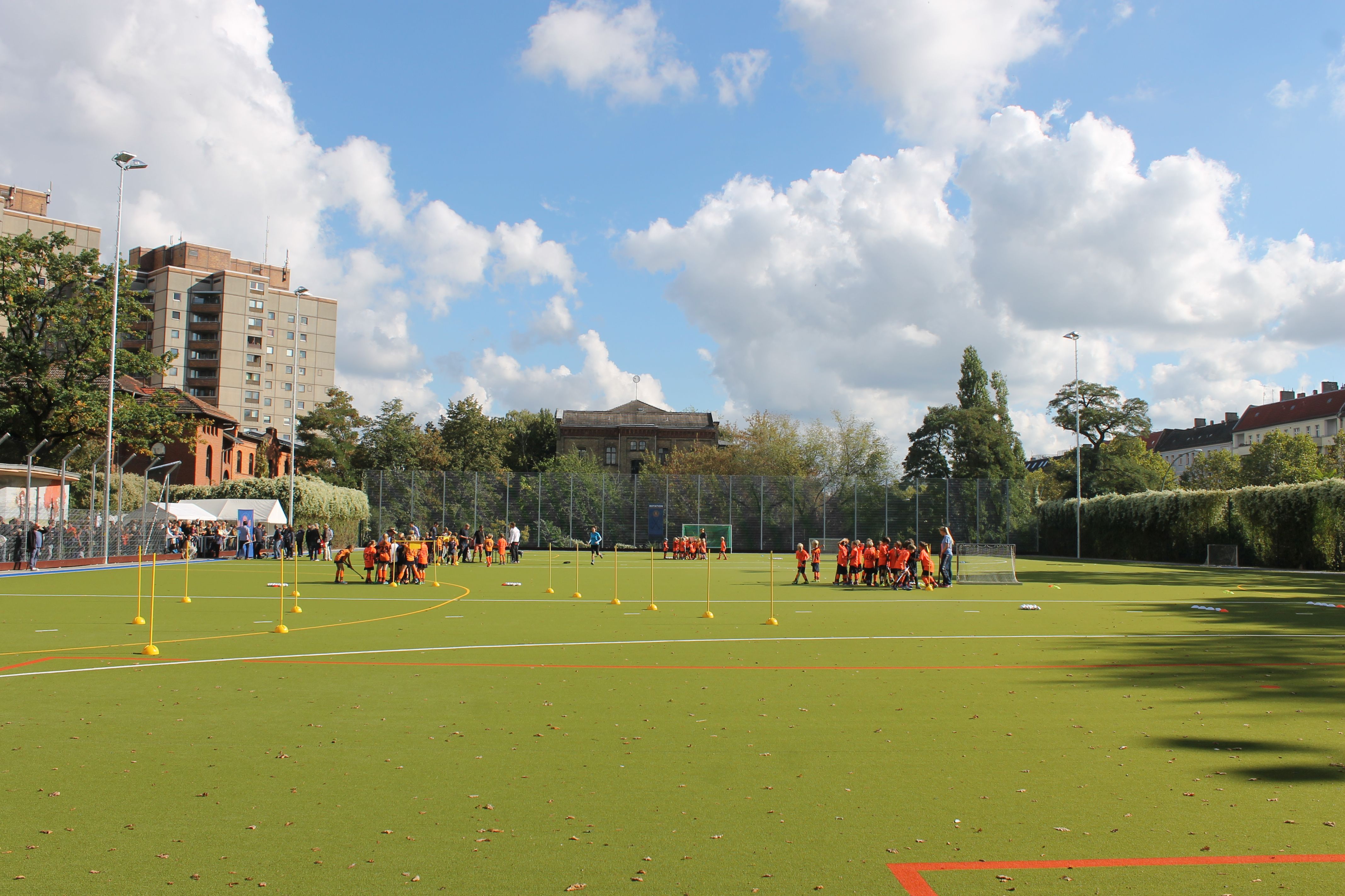 Dennoch ist es gut, dass der Hockeyplatz nicht nur endlich einen vorzüglichen Kunstrasenbelag erhalten hat, sondern auch über das entsprechende Drumherum – Sicherheitsgitter, Trainingsbeleuchtung – verfügt. Denn die Hockeyabteilung der SG Rotation Prenzlauer Berg zählt mittlerweile rund 500 Mitglieder – zirka die Hälfte von ihnen spielt im Kinder- und Jugendbereich. Und für den Nachwuchs gelten andere Maße.