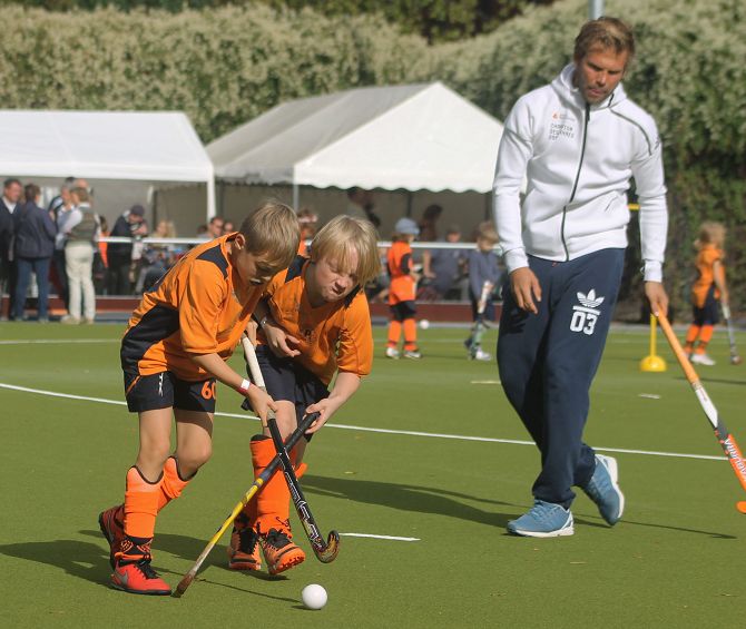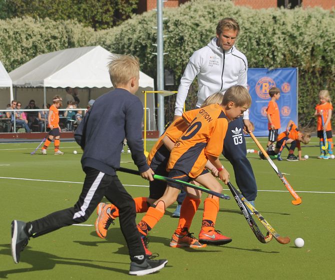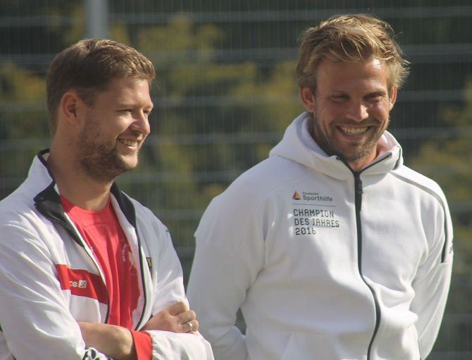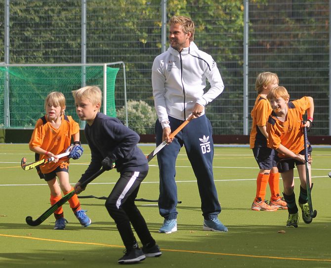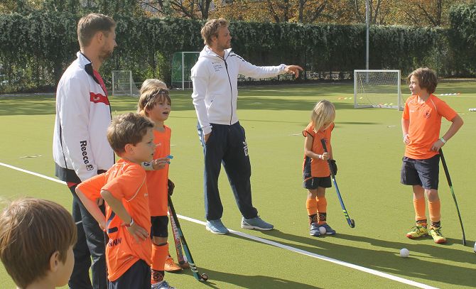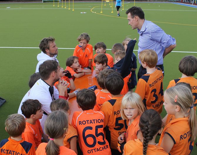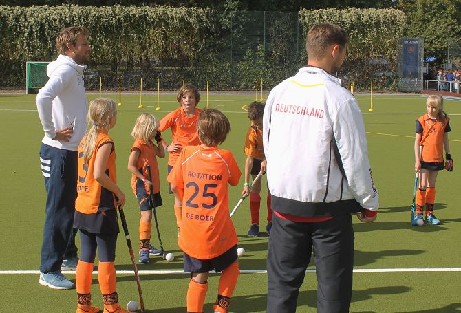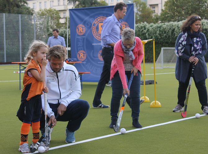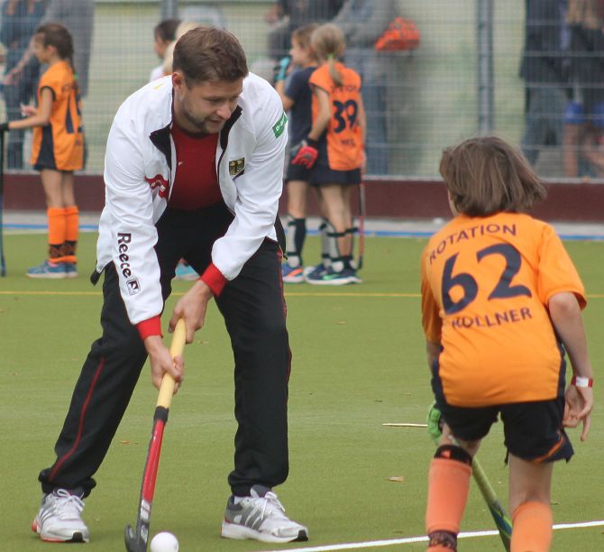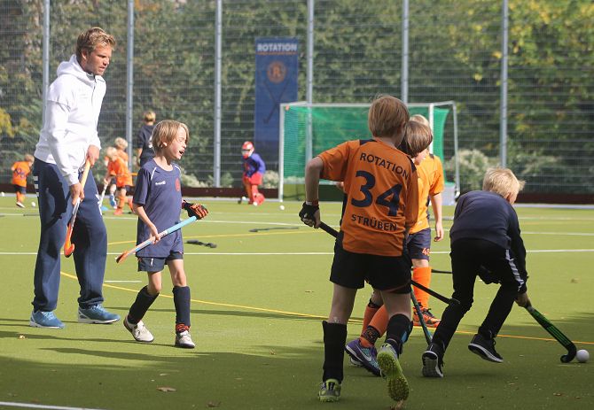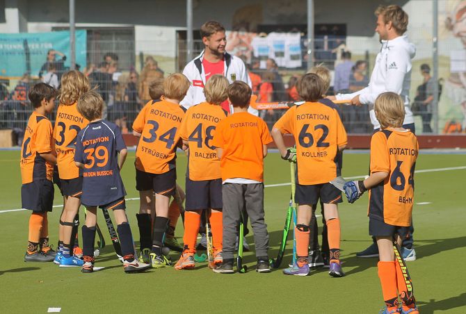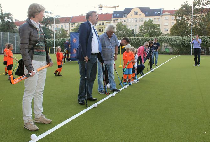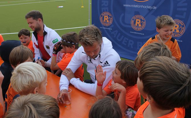 Die Stars des Festes waren allerdings die beiden Hockey-Olympiasieger Moritz Fürste und Martin Häner, die den Nachmittag damit verbrachten, dem Prenzlauer Berger Hockeynachwuchs ein paar Kniffe beizubringen, die ihnen das Gewinnen leichter machen könnten.