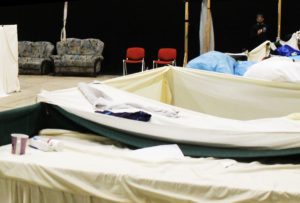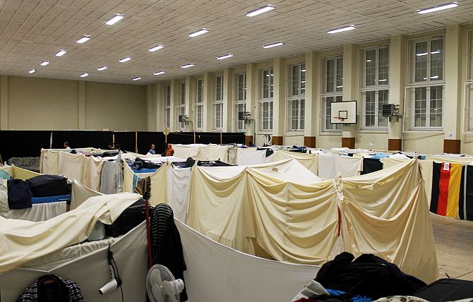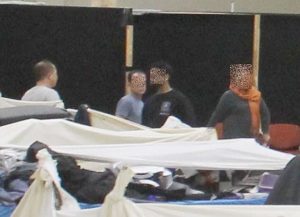 Um wenigstens einen kleinen Schutzraum für sich zu haben, sind die meisten Betten mit Tüchern verhängt. Die sanitären Einrichtungen reichen für die Anzahl der dort lebenden Menschen nicht aus und befinden sich in einem desolaten Zustand. Eine Privatsphäre gibt es hier natürlich trotz der „Lakenburgen“ nicht. Geräusche nicht nur der Nachbarn, sondern auch der an kalten Tagen ständig laufenden Heizlüfter taten ein Übriges, um die ohnehin verzweifelte Stimmung der Menschen zu verstärken.