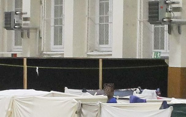 Gekocht wird vor der Tür auf Campingkochern. In der Halle selbst lösen sich der einst zum Schutz des Parkettbodens ausgelegten Spanplatten langsam auf, was Krankheitserregern und Ungeziefer vorzügliche Entwicklungsmöglichkeiten bietet.