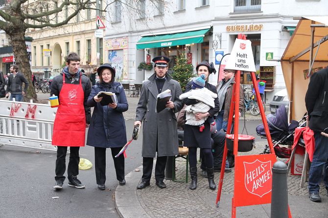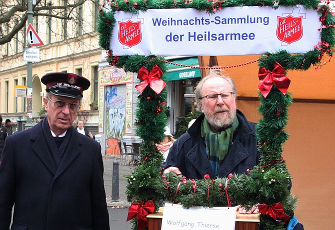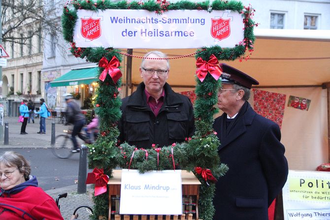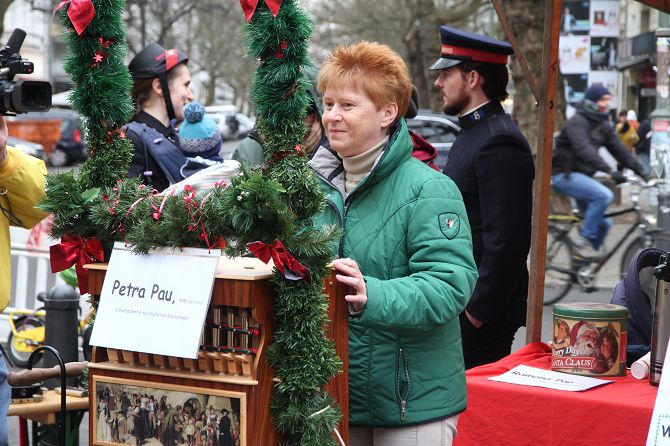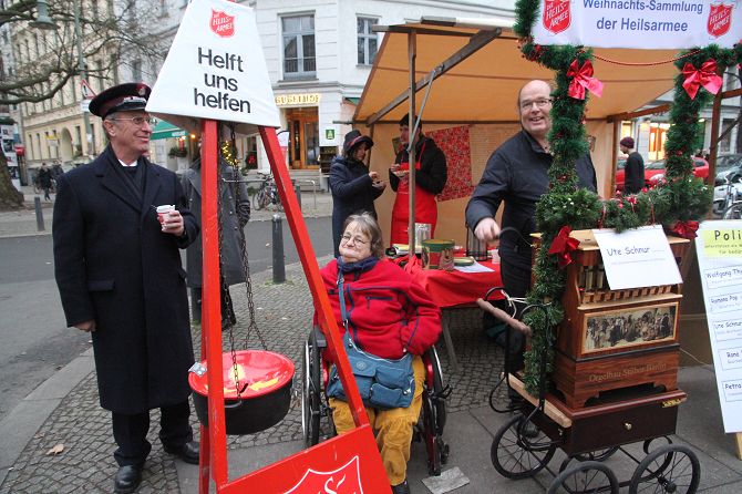 In der Zeit, in der die extra angereiste politische Prominenz wie Stadtrat Dr. Kühne, Senatorin Ramona Pop und Dr. Gottfried Ludewig, MdA, wegen des Totalausfalls keine Drehorgel spielen konnte, ließen die für die Weihnachtsfeier benötigten Spenden merklich nach. Gott sei Dank gab es noch die Sänger der Heilsarmee, die versuchten, in dieser Zeit die Situation zu retten.