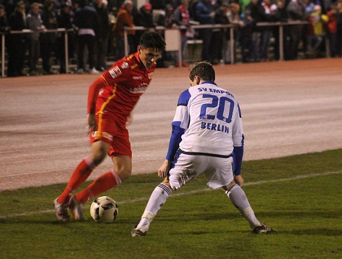 Naja, auf dem Spielfeld war das dann doch ein ziemlich einseitige Angelegenheit: Mit 0:11 Toren zog der Berlinligist SV Empor Berlin beim Freunschaftsspiel gegen den Spitzenreiter der 2. Bundesliga 1. FC Union Berlin den kürzeren.