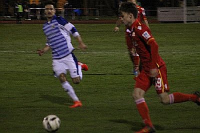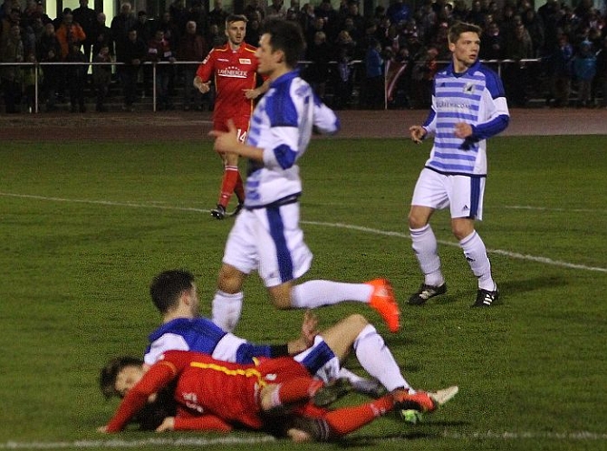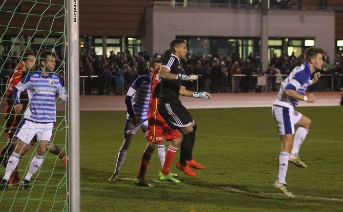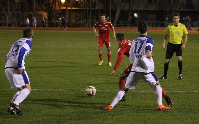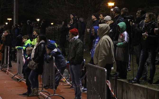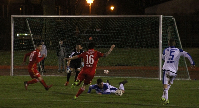 Rund 1.100 Besucher drängten sich am Donnerstagabend im kleinen Stadion des Friedrich-Ludwig-Jahn-Sportpark, um die Aufstiegsaspiranten in die höchste deutsche Spielklasse auf Prenzlauer Berger Geläuf hautnah zu erleben.