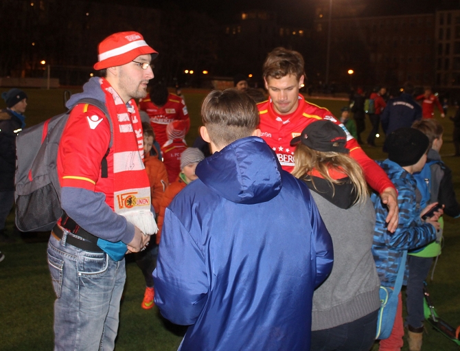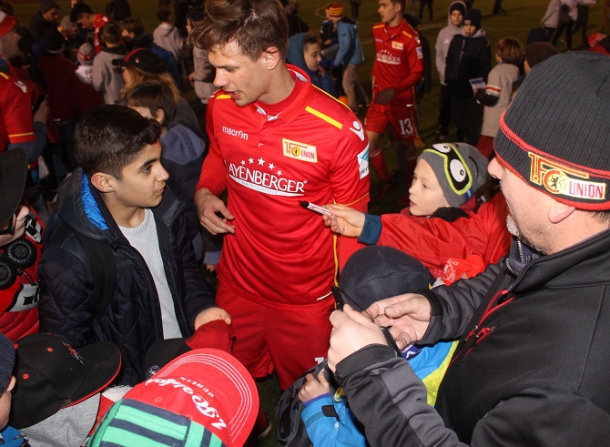 Der Stimmung tat das am diesem Abend keinen Abbruch. Kaum war der Schlusspfiff ertönt, stürmten die Jungs auf den Rasen, um ein Autogramm oder ein Selfie mit den Union-Stars zu ergattern.