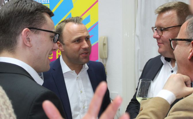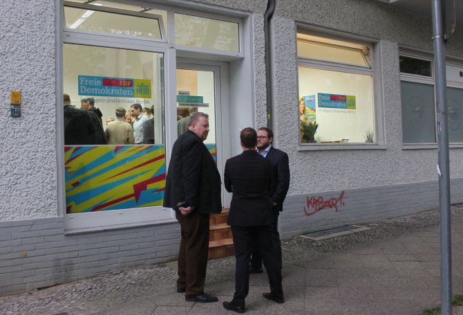 Die Vermutung, dass er sein Abgeordnetenbüro deshalb in Weißensee eröffnet hat, weil im Alt-Pankower Raum der Fluglärm doch zu sehr beim Dialog mit den Bürgern gestört hätte, konnte der FDP-Abgeordnete Florian Swyter gleich bei der Eröffnung der Räume in der Parkstraße 1 entkräften. Entscheidend für die Auswahl, so der Politiker, sei die Nähe zu seiner Wohnung gewesen – und natürlich, dass sich das Bürgerbüro mitten in seinem Wahlkreis befindet.