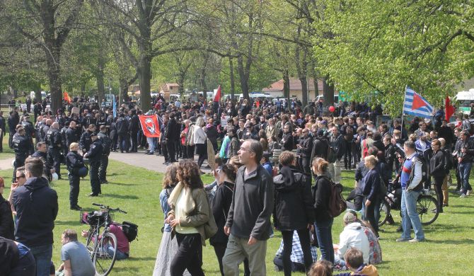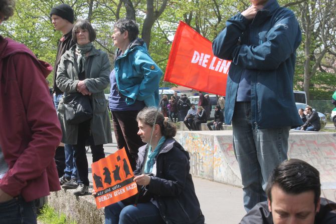 bemerkenswerter Nebeneffekt: Nach der Kundgebung fanden sich viele der Demonstranten beim benachbarten Maifest der Pankower SPD ein, das einen Zuspruch wie selten vor verzeichnen konnte.