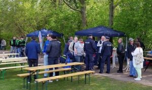 Mit dabei auch der 81jährige Pankower SPD-Veteran Helmut Hampel, der vor 27 Jahren zu den Organisatore des ersten Festes auf dieser Wiese gehörte.
