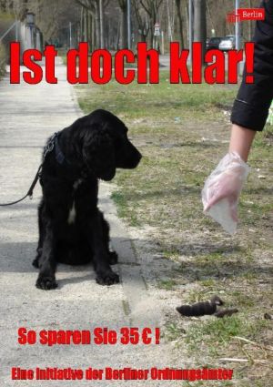 Seit Juli 2016 ist daher im Berliner Straßenreinigungsgesetz festgelegt, dass Hundeführer die mehr oder weniger festen Verdauungsrückstände ihrer Bellos nicht nur unverzüglich selbst zu beseitigen, sondern zu diesem Behufe auch “geeignete Hilfsmittel mit sich zu führen” haben.