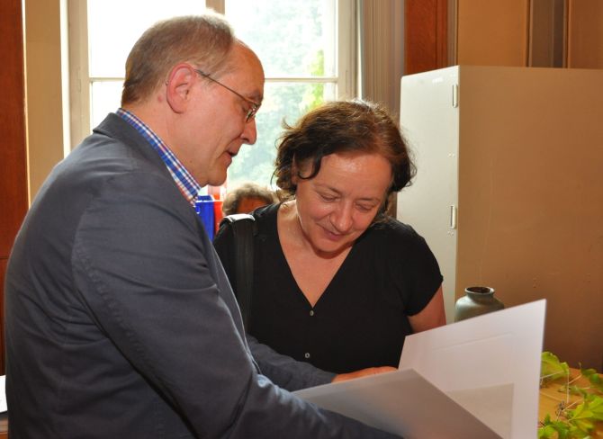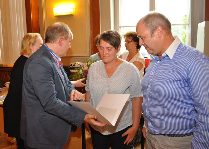 Dafür wurde den Apfelbaumzählern gestern (Mittwoch) vor Beginn der Tagung der Bezirksverordnetenversammlung der Pankower Umweltpreis verliehen, den Kleingartenkolonievorständin Christiane Unger von BVV-Vorsteher Michael van der Meer (Foto oben) und Umweltstadtrat Daniel Krüger entgegen nahm.