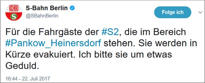 Unterbrochen war auch der S-Bahn-Verkehr zwischen Blankenburg und Pankow.