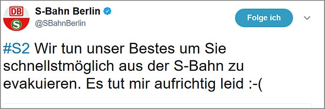 Ein S-Bahn-Zug befand um die zwei Stunden als eine Stunde auf offener Strecke.