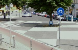 Im Juni vergangenen Jahres hatte die Bezrksverordnetenversammlung das Bezirksamt gebeten, eine Lösung für die Überfahrung des Platzes durch Radfahrer zu entwickeln, die von der Prenzlauer Allee in die Heinersdorfer Straße gelengen wollen.