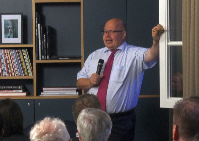 Von einem Zuhörer nach seiner Haltung zu jenen EU-Ländern befragt, die sich weigerten, Flüchtlinge aufzunehmen, gab sich Altmaier zurückhaltend.