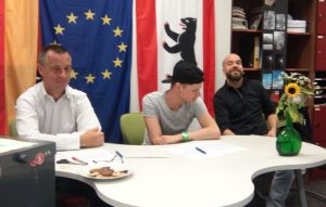 Der Ruf verhallte ungehört, aber wozu gibt es Fahnentuch? Also wurden die nach wie vor stattlich gefüllten Ablagen mit den Fahnen von Berlin, Deutschland und Europa verhüllt.