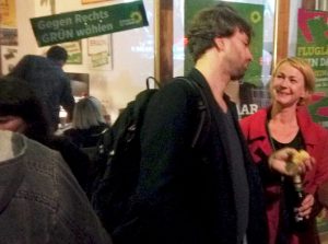 Als um 18 Uhr die ersten Prognose über die Sender geht, ist der Jubel in und vor der Geschäftsstelle der Bündnisgrünen in der Pappelallee groß. 9,5 Prozent! Nach den bei sieben bis acht Prozent eine riesengroße Überraschung.