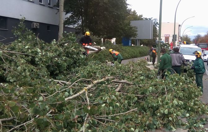 Schäden gab es nicht nur im Nahverkehrsbereich – in der ganzen Stadt wurde der Verkehr durch abgeknickte und entwurzelte Bäume behindert. Auch Prenzlauer Berg legte sich so mancher Baum zur Seite.