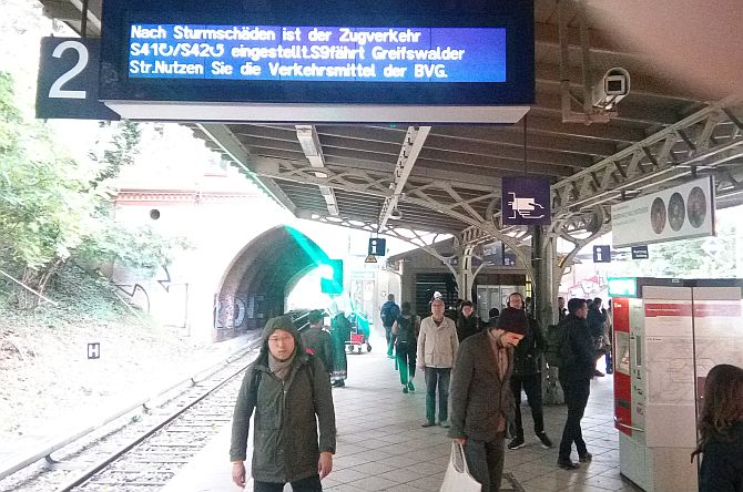 Damit hat das Warten hoffentlich für all jene ein Ende, die trotz des an den Richtungsanzeigern eingeblendeten Hiweises, dass der S-Bahn-Verkehr wegen Sturmschäden ausgesetzt ist, seit den frühen Morgenstunden auf den Bahnhöfen ausharrten.