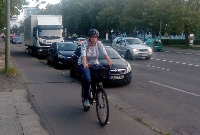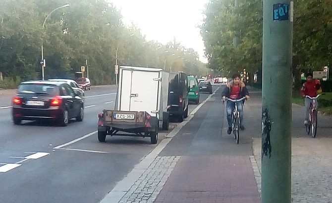 Nein, antwortete der zuständige Bezirksstadtrat Vollrad Kuhn, denn: „Der Radweg entspricht nicht den Anforderungen an eine Radverkehrsanlage, weil die erforderliche Breite nicht vorhanden ist. Auch der Sicherheitsabstand zum ruhenden Verkehr ist nicht gewährleistet.“ Was meint, dass der Radweg zu nah an sich plötzlich öffnenden Autotüren platziert ist.