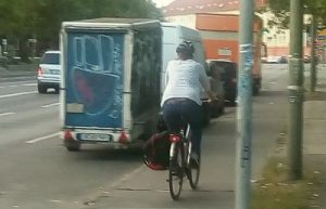 Lucas Baade und Maik Sänger, ihr seid – wie andere auch in Berlin – Pioniere. Ohne euch würde es nicht zum Normalfall werden, dass mit dem Rad auf der Fahrbahn gefahren wird. Irgendwann trauen sich dann auch weitere dort mit dem Rad zu fahren. Irgendwann hat man dann einen kritischen Punkt überschritten und es ist ganz normal, dass alle mit dem Rad auf der Fahrbahn fahren – auch die 10-jährigen Kinder.. Man kann das auch in anderen Städten sehen. Manchmal dauert es allerdings.