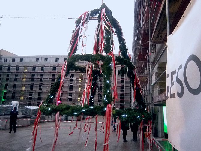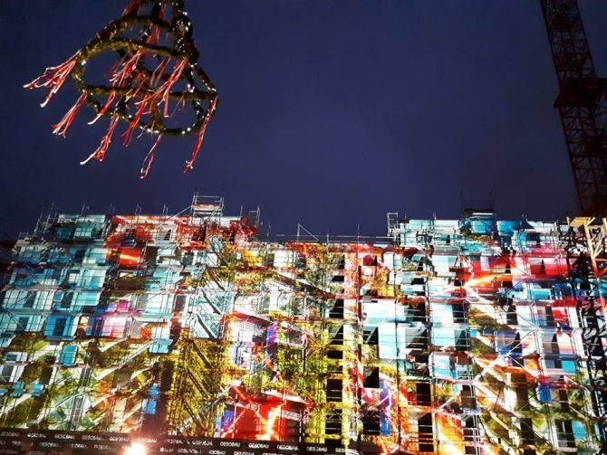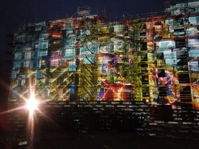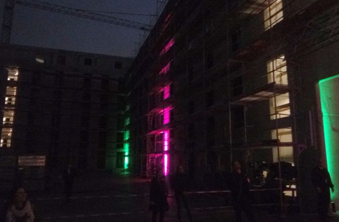 Möglicherweise hatten ja auch die bunten Lichtspiele dazu beigetragen. Weil in Berlin gerade das „Festival of lights“ läuft, bei dem allerlei Gebäude in farbige Lichter getaucht werden, hatte die GESOBAU auch ihre Baustelle wild illuminiert.