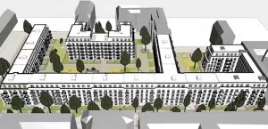 Der im September vergangenen Jahres begonnene Bau von 351 Wohnungen liegt nach Aussage von GESOBAU-Geschäftsführer Jörg Franzen sowohl zeitlich, als auch kostenmäßig im Plan. Im Dezember 2018 soll der Wohnkomplex bezugsfertig sein – und das zu für einen Neubau relativ zivile Mieten. Das betrifft nicht nur die obligatorischen 30 Prozent – hier immerhin 114 Wohneinheiten – die zu einer Nettokaltmiete von 6,50 Euro angeboten werden, sondern auch die anderen 237 Wohnungen, bei denen der Mietzins laut Franzen unter zehn Euro liegen wird.