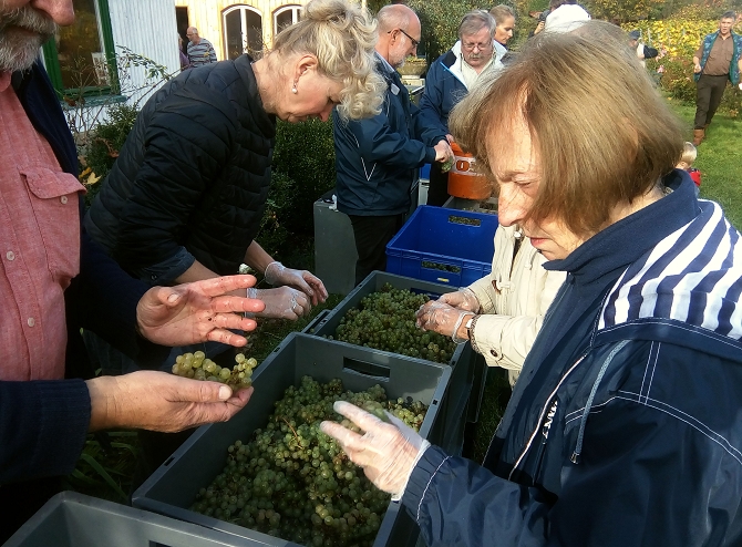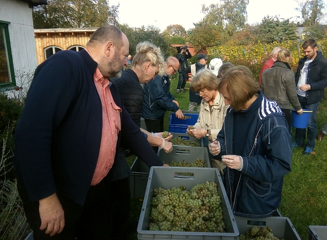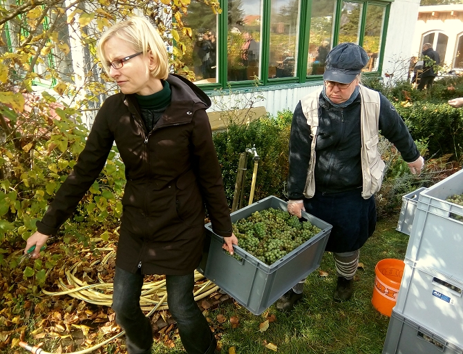 Nur rund 300 Kilogramm Trauben am konnten am Sonntag von den 650 Rebstöcken des Prenzlauer Berger Weingartens geschnitten werden.