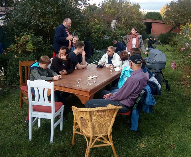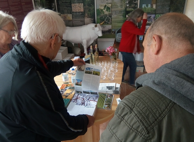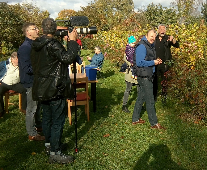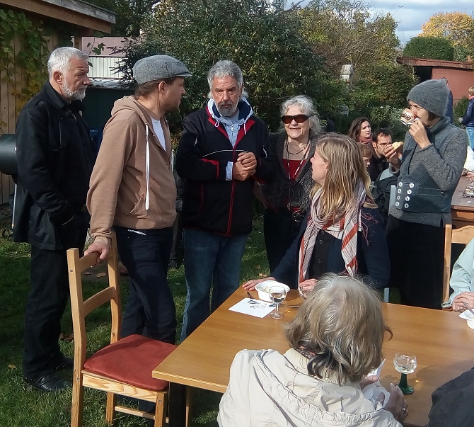 Einige Erst-Leser ließen sich vom Vereinsvorsitzenden Frank Pietsch Interessantes über den Weinanbau in Prenzlauer Berg erzählen, andere streiften durch den Weingarten, um Wissenswertes über die anderen Sorten, da neben dem Riesling wachsen, zu erfahren