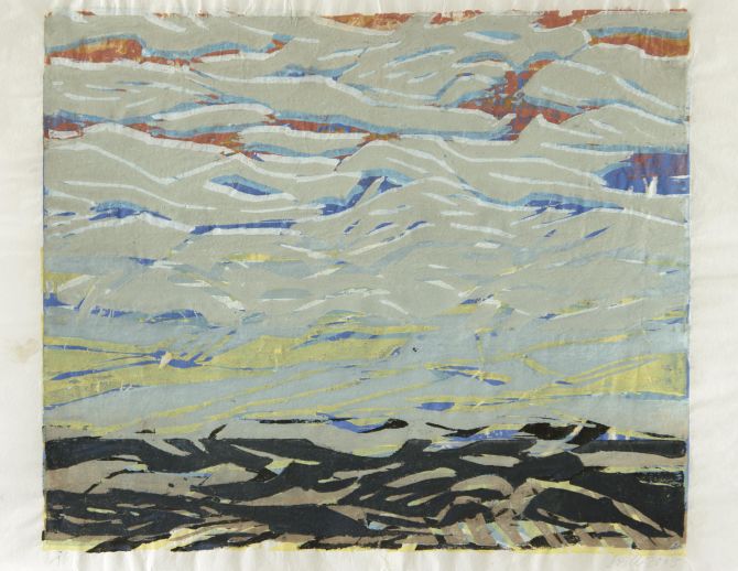 Rhythmus sowie Struktur sind in emotionaler Bewegung und ergeben eine freie, fast ungegenständliche malerische Form. In ihren Farbholzschnitten, oft von der „verlorenen“ Form gedruckt, überlagern und mischen sich die z.B. Blau- und Grüntöne der Platten zu einem melodischen Klangreichtum.