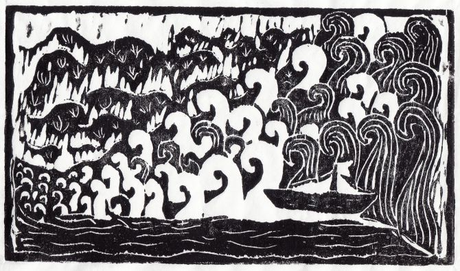 Malerisch-stimmungsvolle Farbholzschnitte von Hand gedruckt von Marion Stille stehen in einem spannenden Gegenüber zu den eindrücklichen Schwarz-Weiß-Holzschnitten, einfarbigen Material-drucken und Radierungen von Helga Höhne in der 102. Ausstellung des Druckgraphik-Ateliers.