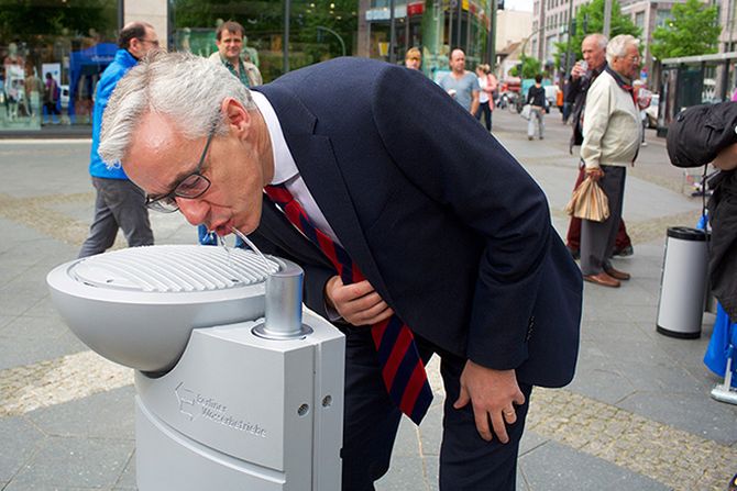 Rund 40 Trinkbrunnen haben die Wasserbetriebe mittlerweile in der Stadt aufgestellt – und demnächst sollen es noch ein paar mehr werden. Das könnte man jetzt einfach so machen: Planen, Standorte suchen, aufbauen, anschließen – fertig.