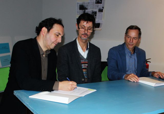 Nach den offiziellen Reden, in denen das Engagemant aller Beteiligen gelobt wurde, wurde dann die Übergabe mit den Unterschriften von Stadtrat Kuhn und den Bürgersteig-Vorständen Bernd Krüger und Max E. Neumann unter den Nutzungsvertrag auch schriftlich besiegelt. Für das, was nun aus dem doch aufqwändig Sanierten Haus wird, ist nun der Verein zuständig.