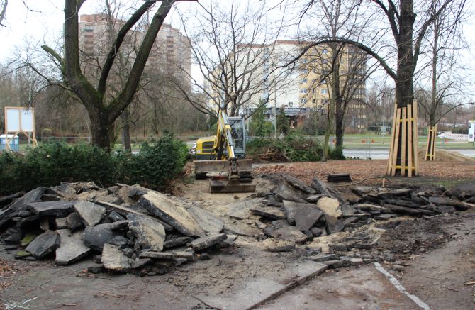Ein Teil der Bäume entlang der Parkwege, darunter Robinien, Pappeln, Kirschen, kleine Platanen, Hainbuchen und Ahorn, sind in schlechtem Zustand und behindern zum Teil die Entwicklung benachbarter Gehölze. Durch die Rodung von nicht erhaltenswerten Bäumen wird die Entwicklung angrenzender Gehölze unterstützt und der Gesamtbestand durch Auslichtung und Neupflanzung an geeigneten Stellen aufgewertet. Als Ersatz werden im Rahmen der Arbeiten im Park 33 Bäume neu gepflanzt.