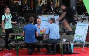 Der Parking Day, weiß Wikipedia zu berichten, ist ein seit 2005 international jährlich begangener Aktionstag zur Re-Urbanisierung von Innenstädten: In der Regel am dritten Freitag des Septembers werden Parkplätze im öffentlichen Straßenraum modellhaft kurzfristig umgewidmet und einer anderen Nutzung (…) zugeführt.